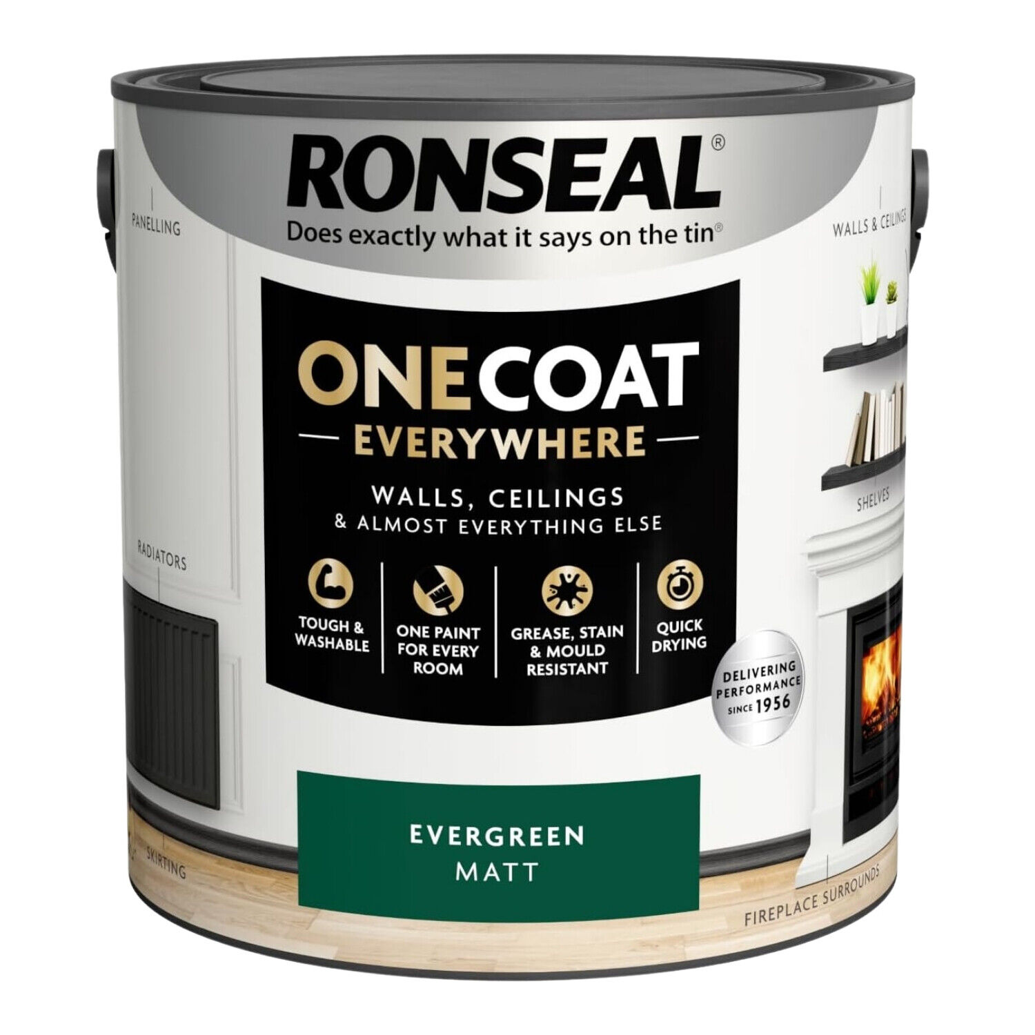 Ronseal Paint One Coat Evergreen Matt Quick Drying Stain Mould Resistant 2.5L