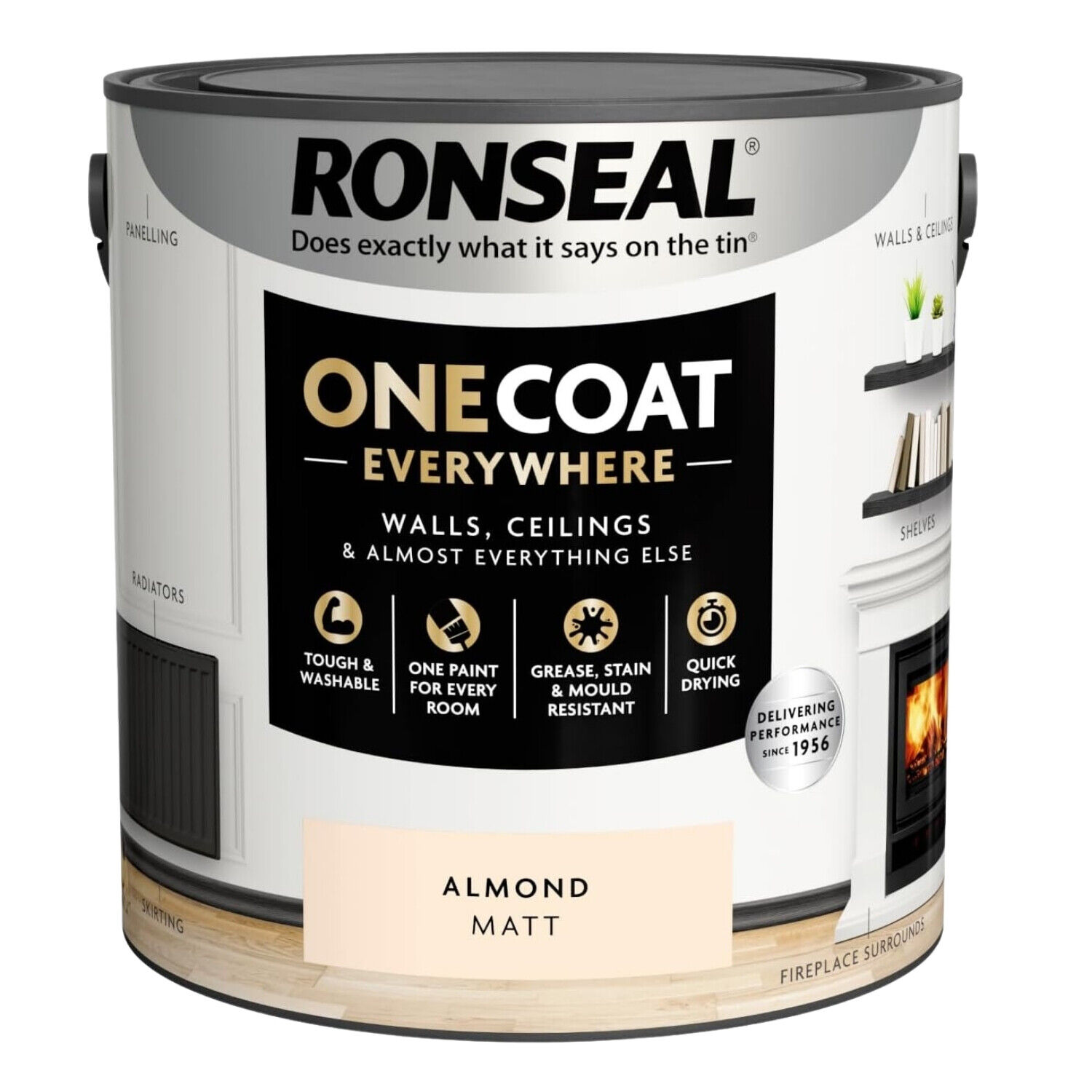Ronseal Paint One Coat Almond Matt Quick Dry Stain Grease Mould Resistant 2.5L