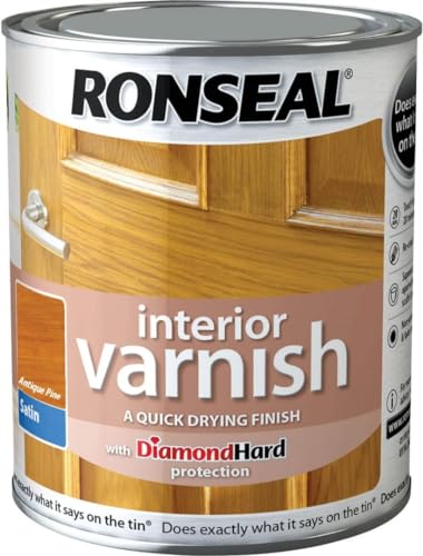 Ronseal Interior Varnish, Quick Drying Finish, Diamond Hard Protection, Antique Pine Satin, 750 ml, 1 piece