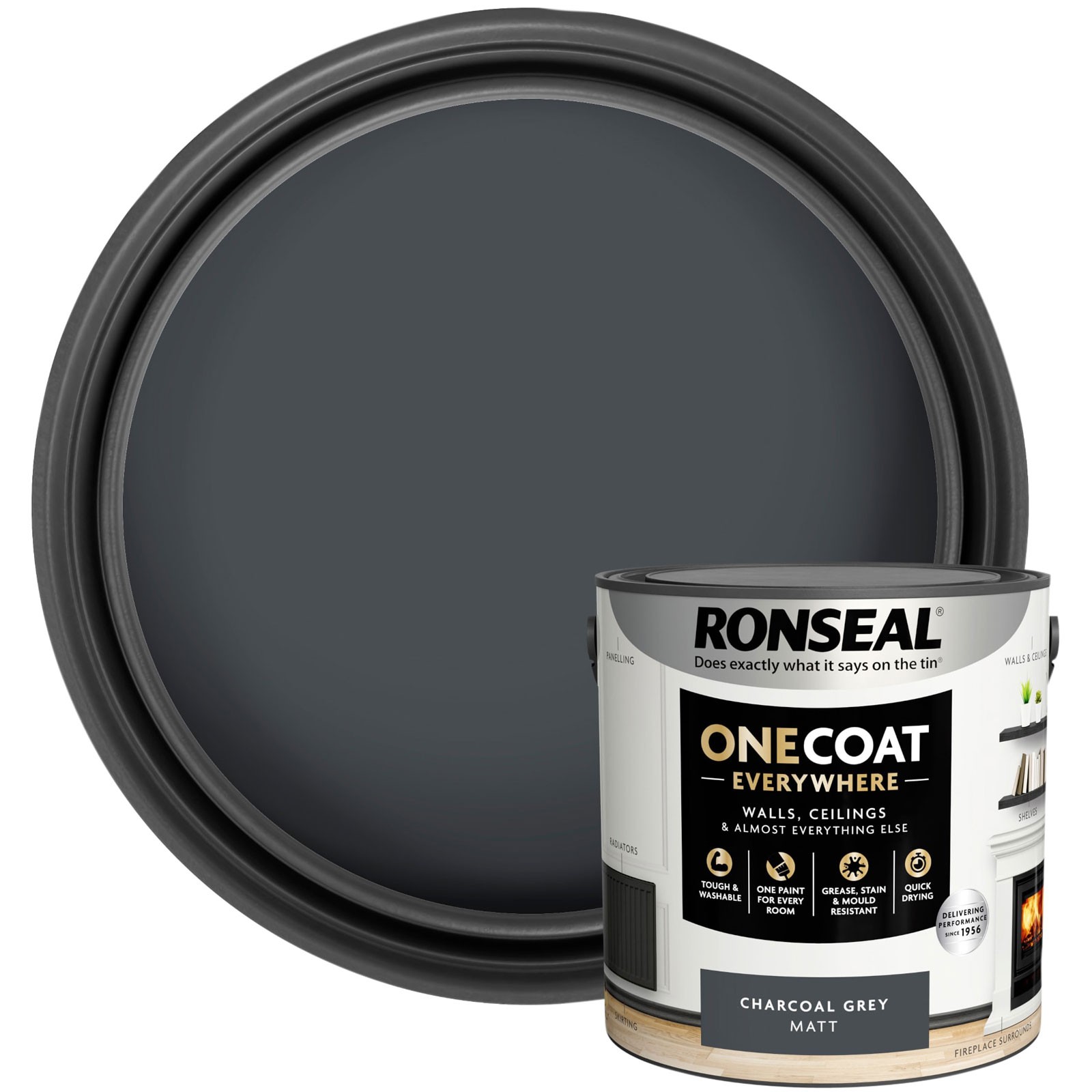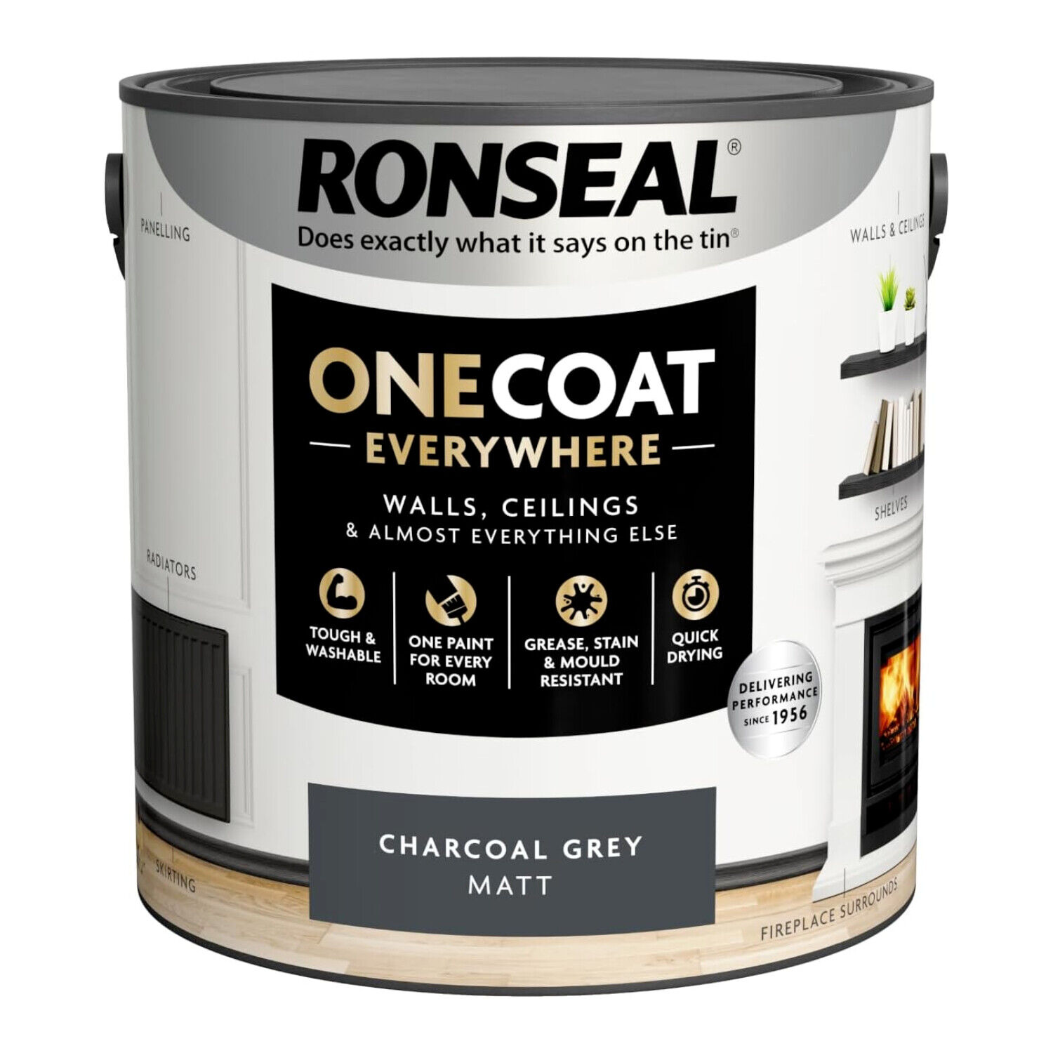 Ronseal One Coat Everywhere Washable Tough Matt Paint 2.5L - Charcoal Grey