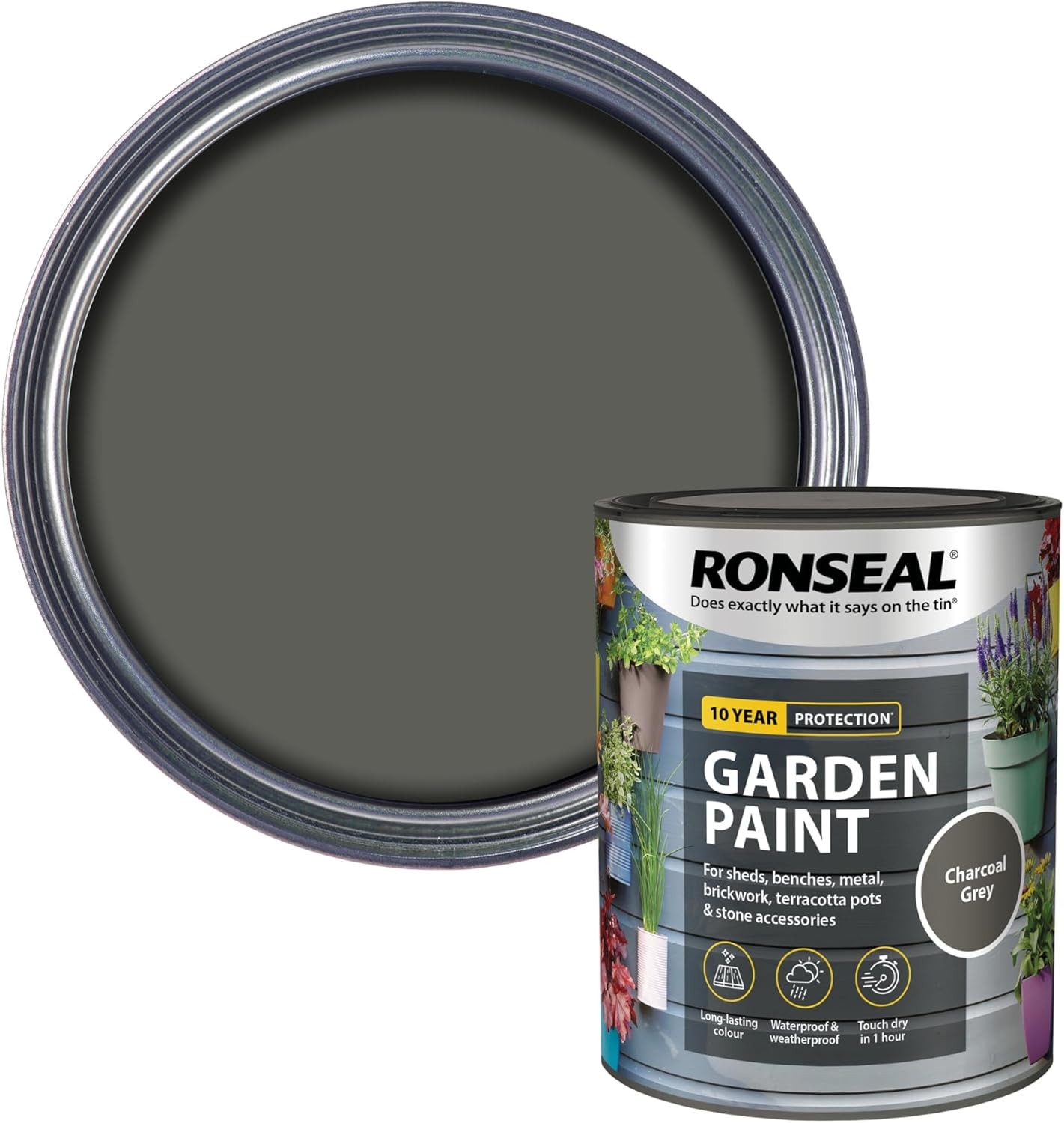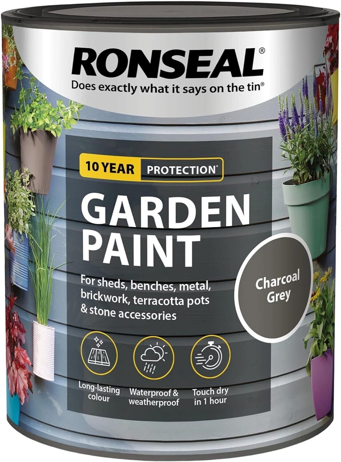 Ronseal 38263 Garden Paint Charcoal Grey 750ml Exterior Outdoor Wood Shed Metal