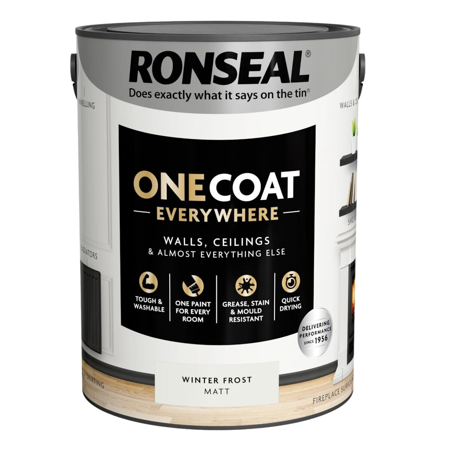 RONSEAL One Coat Everywhere Paint Winter Frost Matt 5L – Durable Interior Paint for Walls & Ceilings Smooth Finish Quick Coverage Ideal for Easy Home Projects