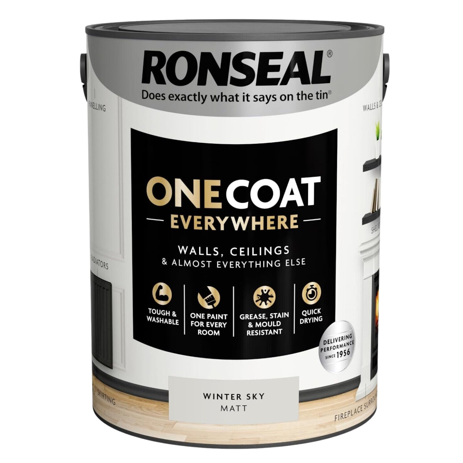 RONSEAL One Coat Everywhere Paint Winter Sky Matt 5L – Durable Interior Paint for Walls & Ceilings Smooth Finish Quick Coverage Ideal for Easy Home Projects