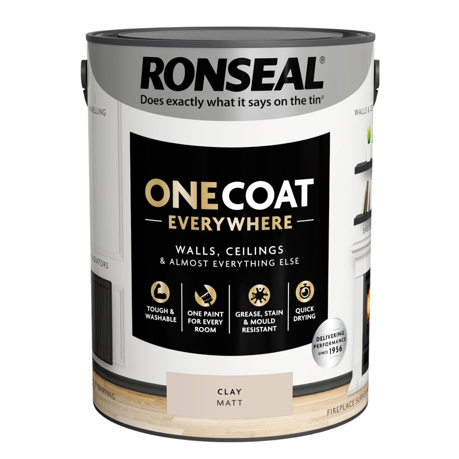 Ronseal One Coat Everywhere Paint Clay Matt 5L – Durable Interior Paint for Walls & Ceilings Smooth Finish Quick Coverage Ideal for Easy Home Projects