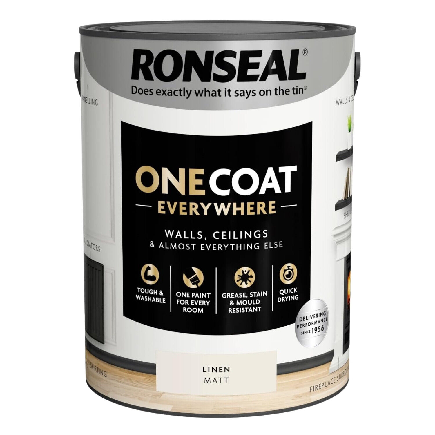 Ronseal Paint One Coat Linen Matt Quick Dry Grease Stain Mould Resistant 5L