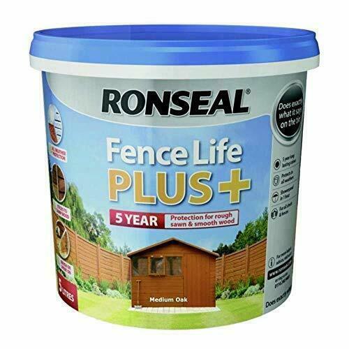 Ronseal 5 Litre Medium Oak One Coat Fence Life Fast Quick Dry Garden Shed Paint