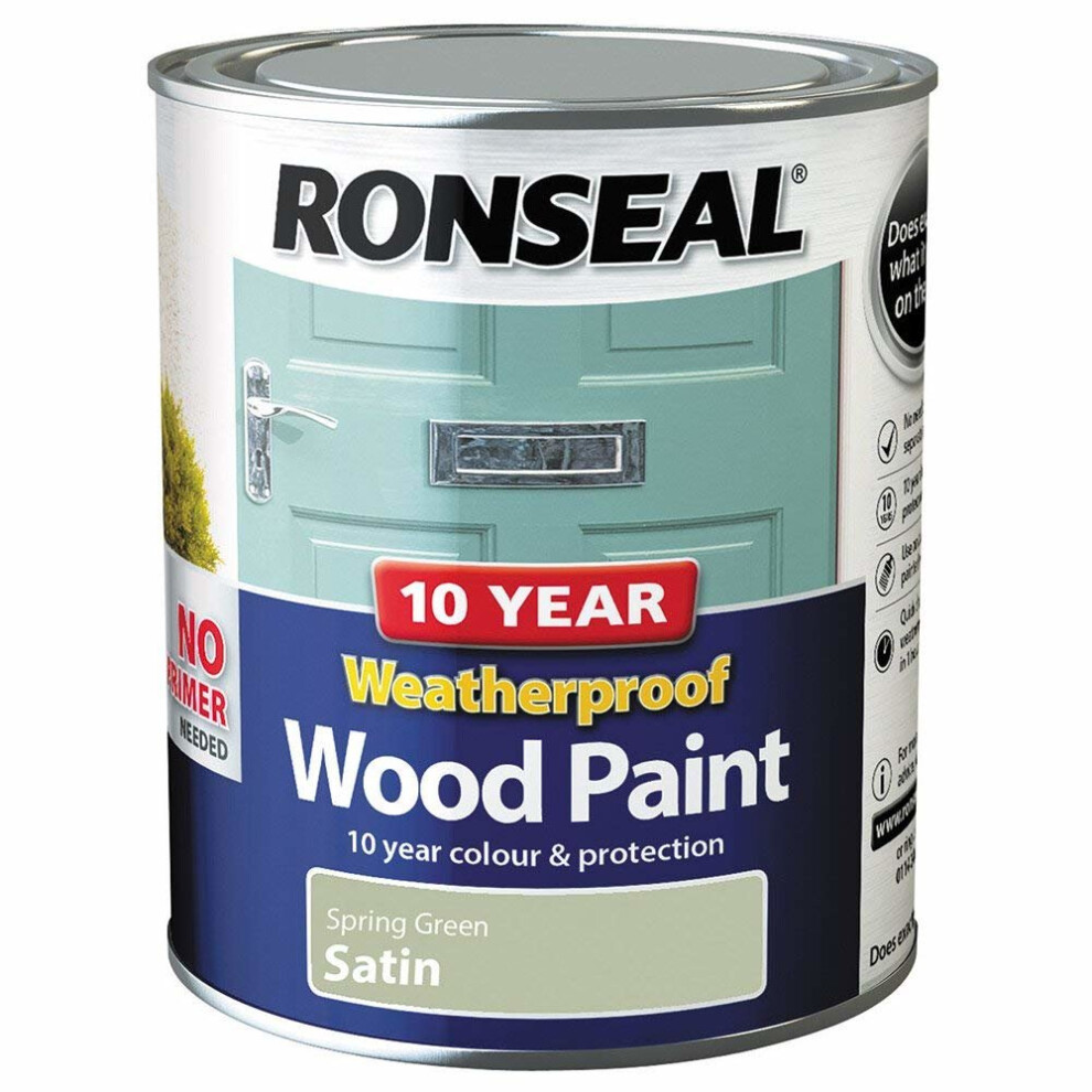 Ronseal 10 Year Weatherproof Wood Paint Spring Green Satin 750Ml RSL38790