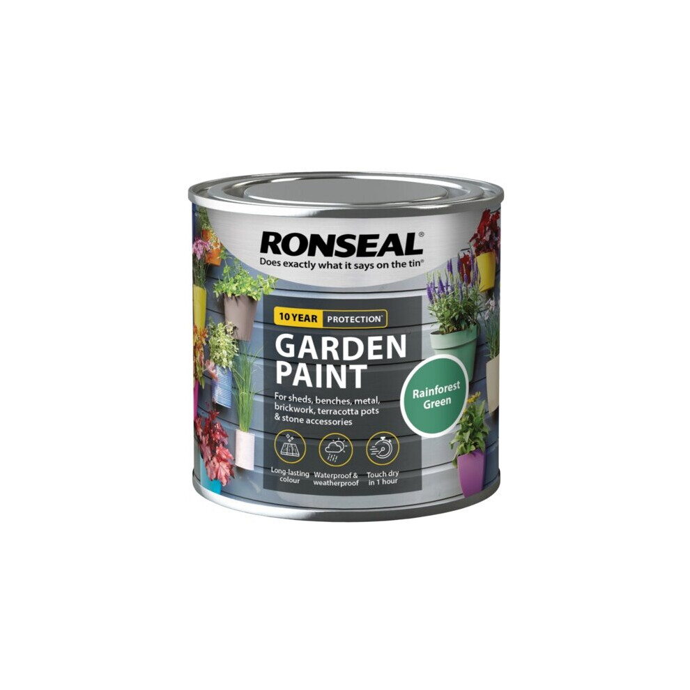 Ronseal Garden Paint Metal Wood Brick Stone Shed Bench 250ml - Rainforest Green