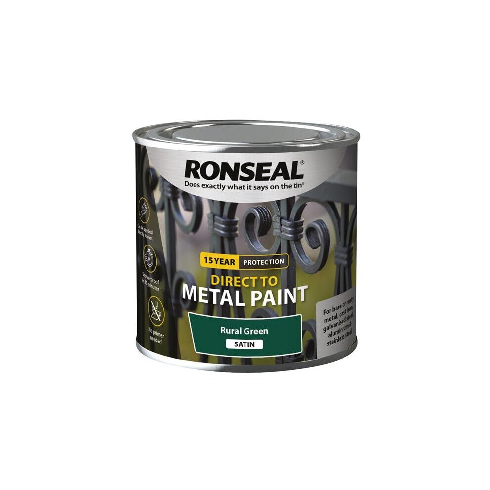 Ronseal 39186 Direct to Metal Paint Rural Green Satin 250ml RSLDTMRGS250