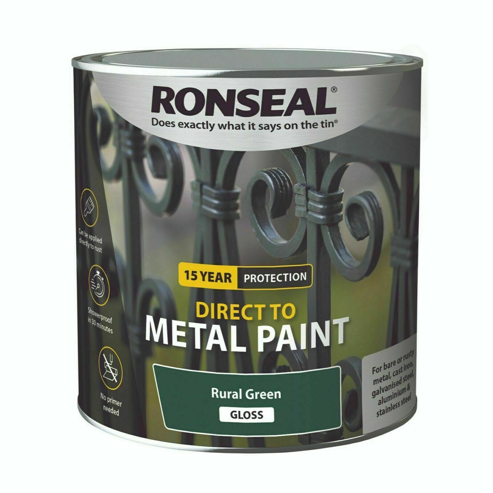 Ronseal Direct to Metal Paint Rural Green Gloss 250ml RSLDTMRGG250