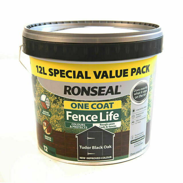 Ronseal 5 Litre Tudor Black Oak One Coat Fence Life Quick Dry Garden Shed Paint