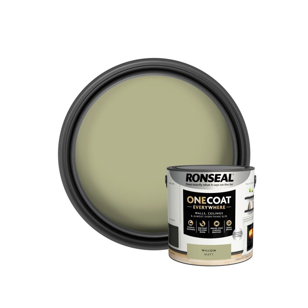 Ronseal One Coat Everywhere Paint Willow Matt 2.5L – Durable Interior Paint for Walls & Ceilings Smooth Finish Quick Coverage Ideal for Easy Home Projects
