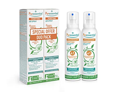 Puressentiel DUO Pack Purifying Air Spray 200 ml – 100% Natural Room Spray – Air Purifier – Air Freshener – Odour Eliminator– Organic Essential Oils – For Your Home, Car & Office – Lasts Over 6 Months