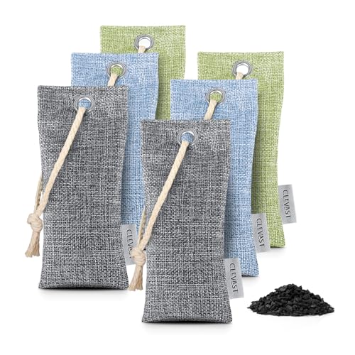 CLEVAST Bamboo Charcoal Air Purifying Bags (6×75g), Removes Odors and Moisture, Nature Fresh Air Purifier Bags, Deodorizer Eliminator, Purifier for Closet, Shoe, Large Room, Car Air freshener