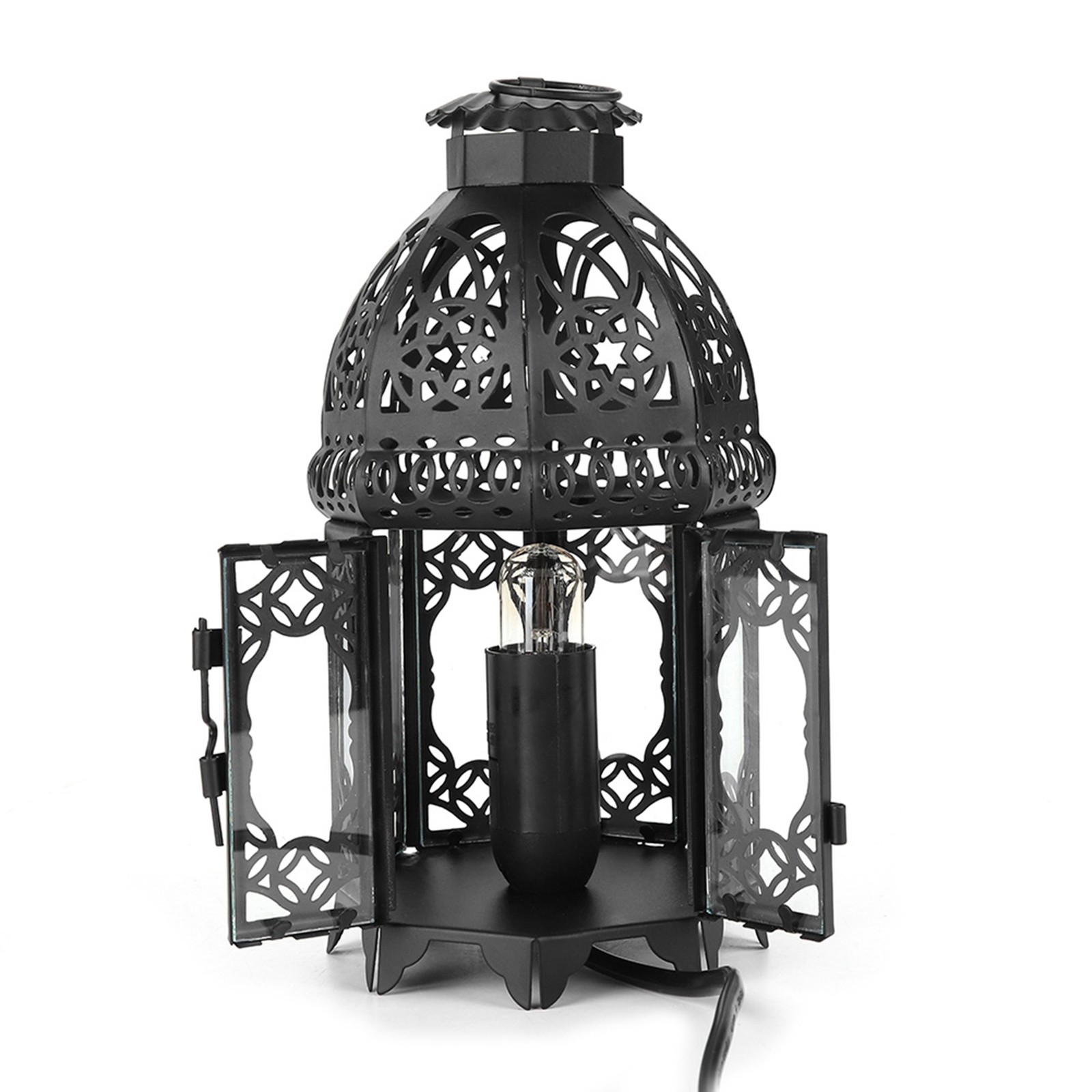 (Black)Vintage Iron Frame Natural Crystal Salt Rock Lamp Air Purifier Room Night