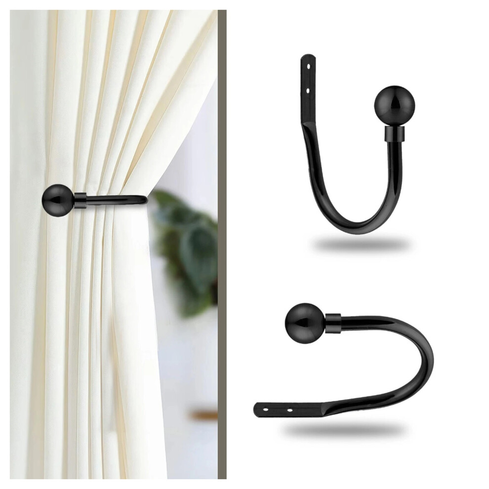 (Hold Backs Pair, Matte Black) Blackout Extendable Metal Curtain Pole 28mm Room Darkening Rod Brackets Hooks and Fittings