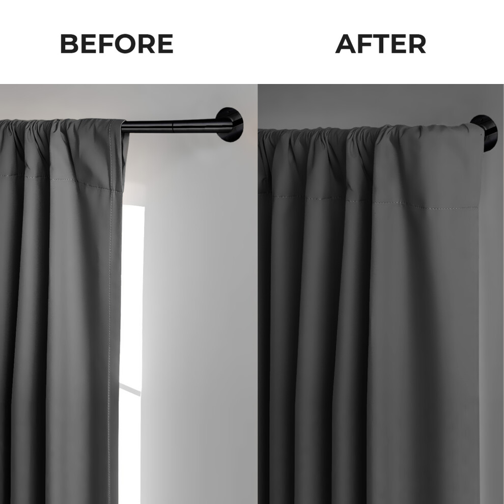 (160-300 cm (63" - 118" In), Matte Black) Blackout Extendable Metal Curtain Pole 28mm Room Darkening Rod Brackets Hooks and Fittings