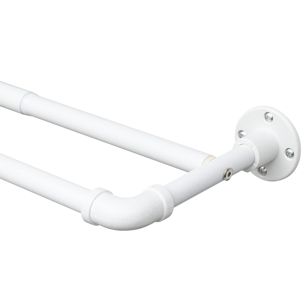 Harrms Industrial Double Curtain Pole, Curtain Poles for Eyelet Curtains, Matt White, 74-273cm, Extendable Metal Curtain Rod Blackout Room Darkening