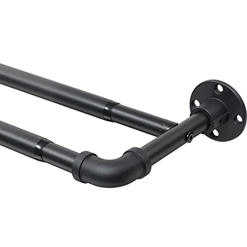 Harrms Industrial Double Curtain Pole, Curtain Poles for Eyelet Curtains, Matt Black, 74-236cm, Extendable Metal Curtain Rod Blackout Room Darkening