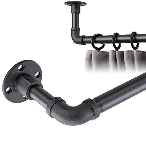 Harrms Industrial Curtain Poles Extendable, Matte Black Curtain Pole 81-145cm, Heavy Duty Room Darkening Window Curtain Rod Ceiling Wall Mount for