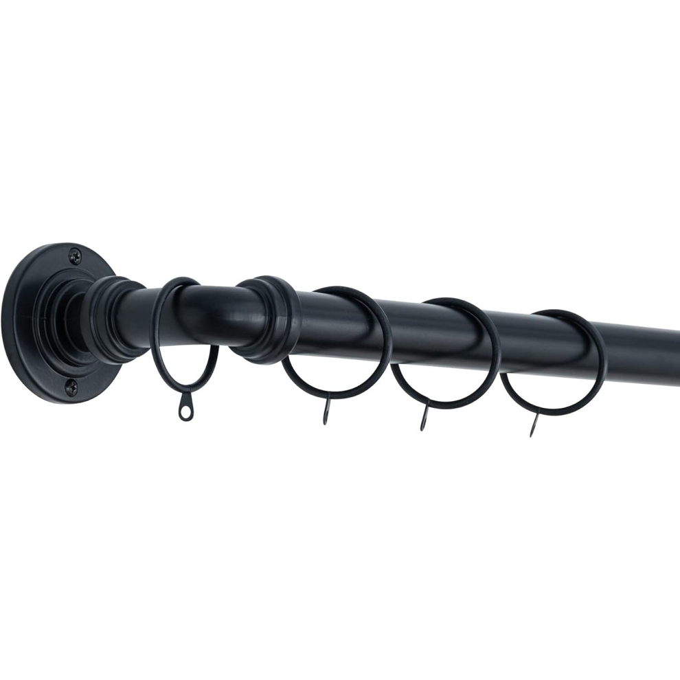 Imperial Rooms Curtain Pole Metal Extendable Room Darkening Blackout Curtain Rod with Curved Pole - Adjustable Curtain Poles for Eyelet Curtains (Matte Black, 120-210cm, 48 to 83 Inches)