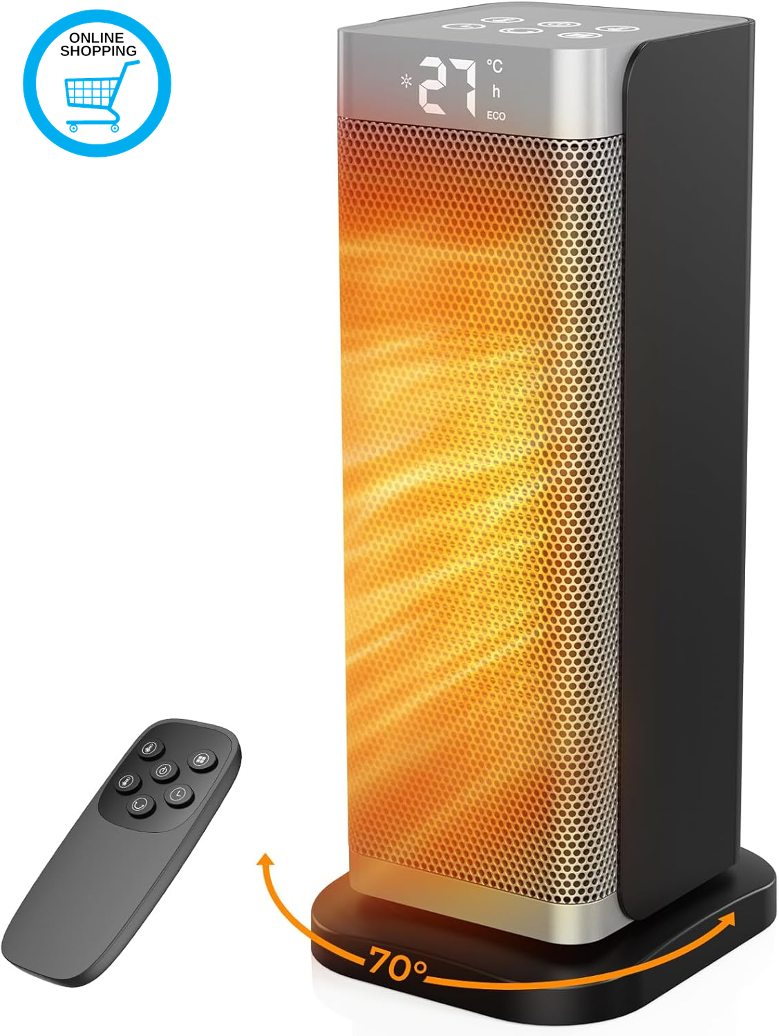 Unbranded (As show, One size) Electric Fan Heater, PTC Heater 1200W Space 90 Oscillation, 3 Modes, Portable Energy Saving for Living Room, B