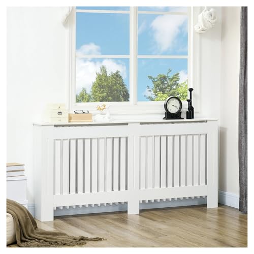 JCXIOC Radiator Cover Cabinet MDF Cabinet Slatted Grill with Shelf for Heaters, Modern Wall-Mounted Living Room Solution(White Vertical XL)