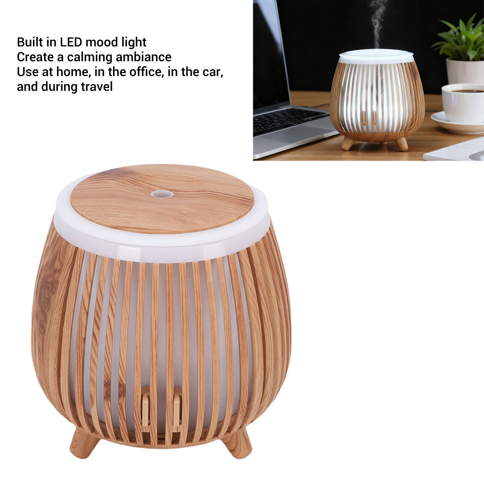 Diffuserlove Ceramic Diffuser 160ML Essential Oil Diffusers for Home Room Air Humidifier Cool Mist Electric Humidifier for Bedroom White(Size:6.8"H x 3.6"W) (Yellow Wood Pattern Base)