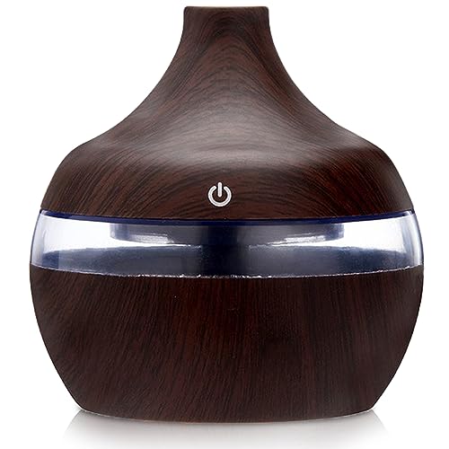 300ml Essential Oil Diffusers, Aromatherapy Diffuser Oil Humidifiers for Home, Aroma Diffuser for Room, Vaporizer Humidifier Oil 7 Colors LED Light Room Fresheners for Home (Brown)