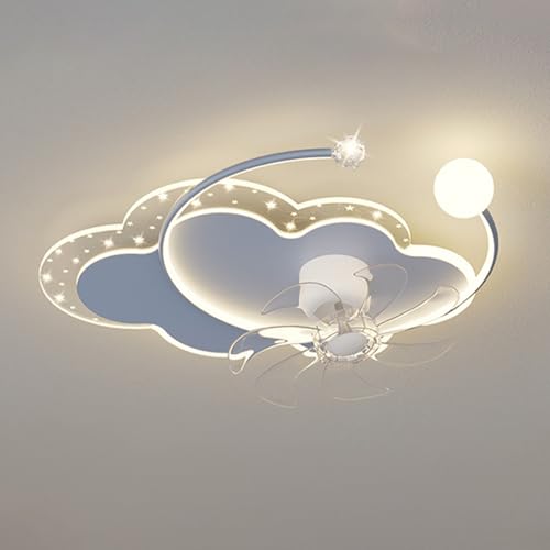 SLFFLS Children's Room Light Fans with Cartoon Chandelier Lamp in Cloud-Sdimmable Flush Mount Ceiling Lights for Bedroom Living Room/D