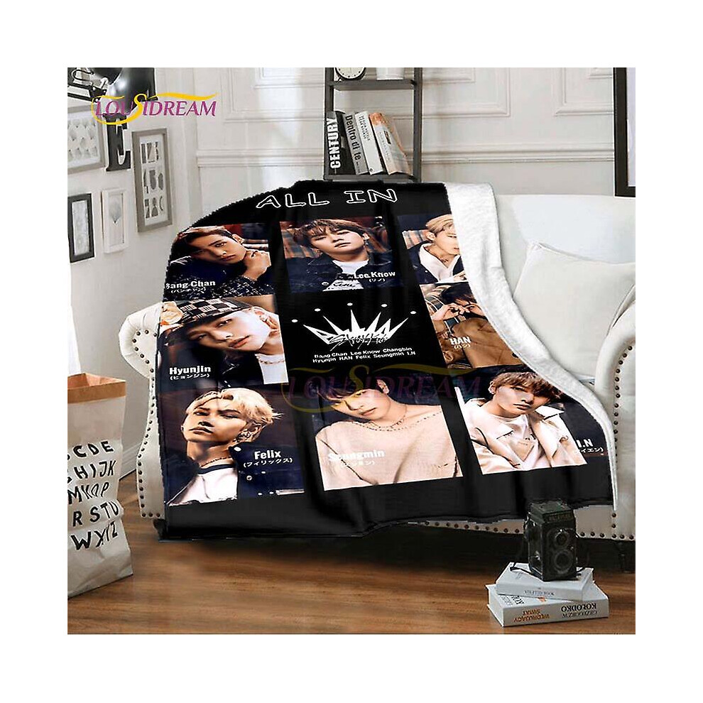 (1, 150x180cm-L) New Kpop Star Stray Kids Throw Blanket Soft Blankets For Beds Sofa Cover Winter Bedding Queen Size Room Decor Fans Gift Picnic