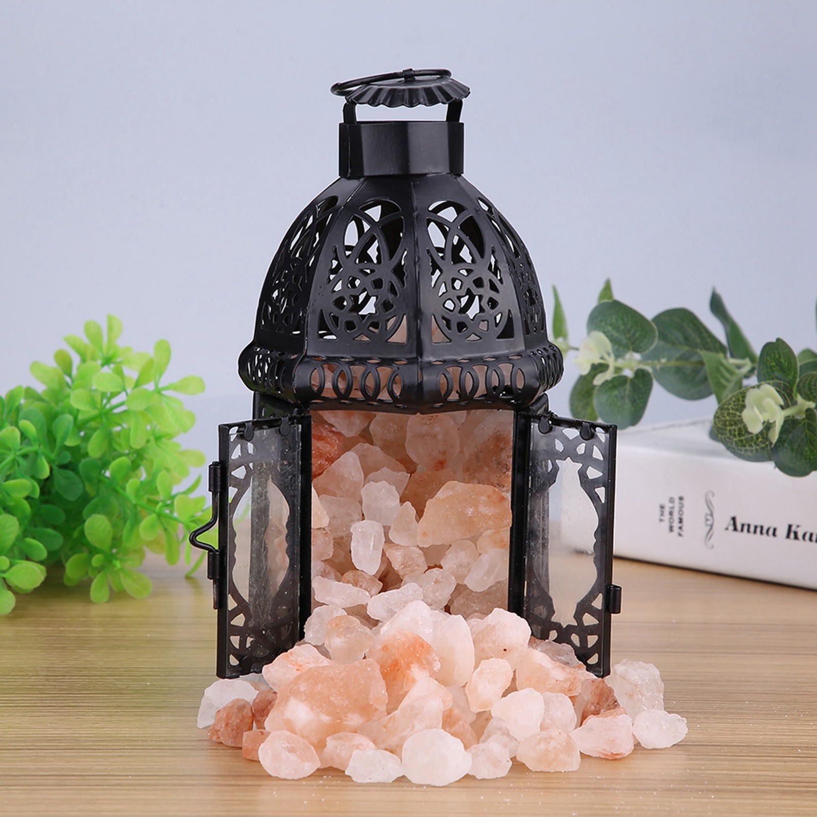 (Black)Vintage Iron Frame Natural Crystal Salt Rock Lamp Air Purifier Room SG