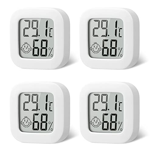 flintronic 4pcs Room Thermometer Hygrometer Indoor, Mini Digital Temperature Humidity Meter Gauge, Accurate Hygrometer with Clear LCD Display and Face Icons for Home Baby,Office, Garden(with Battery)