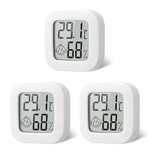 flintronic 3pcs Room Thermometer Hygrometer Indoor, Mini Digital Temperature Humidity Meter Gauge, Accurate Hygrometer with Clear LCD Display and Face Icons for Home Baby,Office, Garden(with Battery)