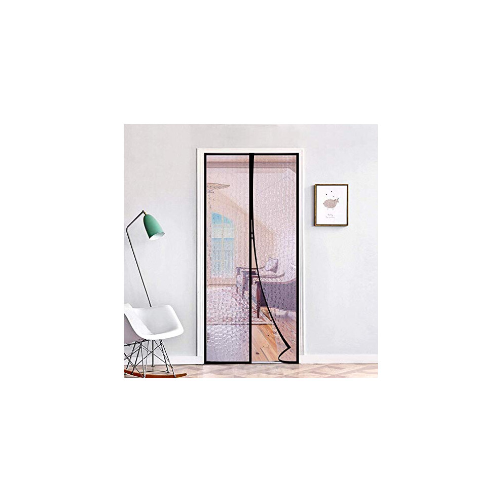 Insulated Door Curtain, Magnetic Thermal Door Cover Screen Door Self-Closing Privacy Magnetic Screen Door Hands Free for Patio, Kitchen, Bedroom, Air Conditioner Room, Fits Doors up to 34" x 80",Black
