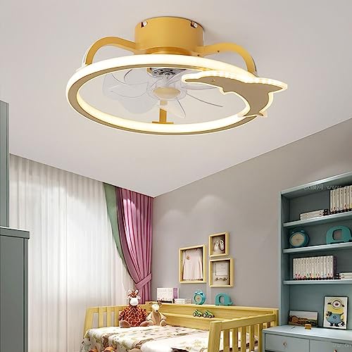 's Room Ceiling Fan Lamp with Light Remote Control to Adjust The 3-Speed Color Temperature Fan Chandelier,Hanging Light(Gold)