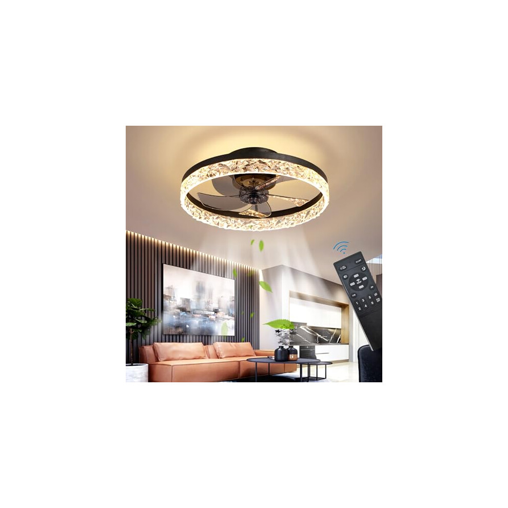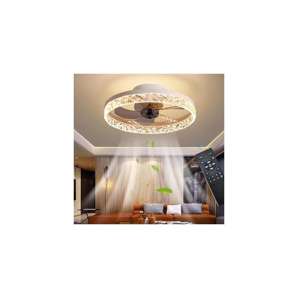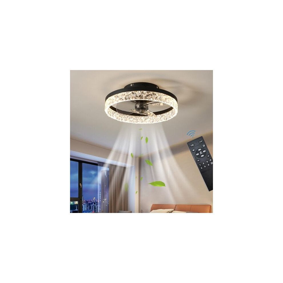 RHEAFON Quite Ceiling Fans with Lights and Remote Smart Ceiling Fan Dimmable LED Bladeless Modern Crystal Ceiling Fan for Bedroom Living Room Dining Room Fan Reversible and 6 Speeds (45cm