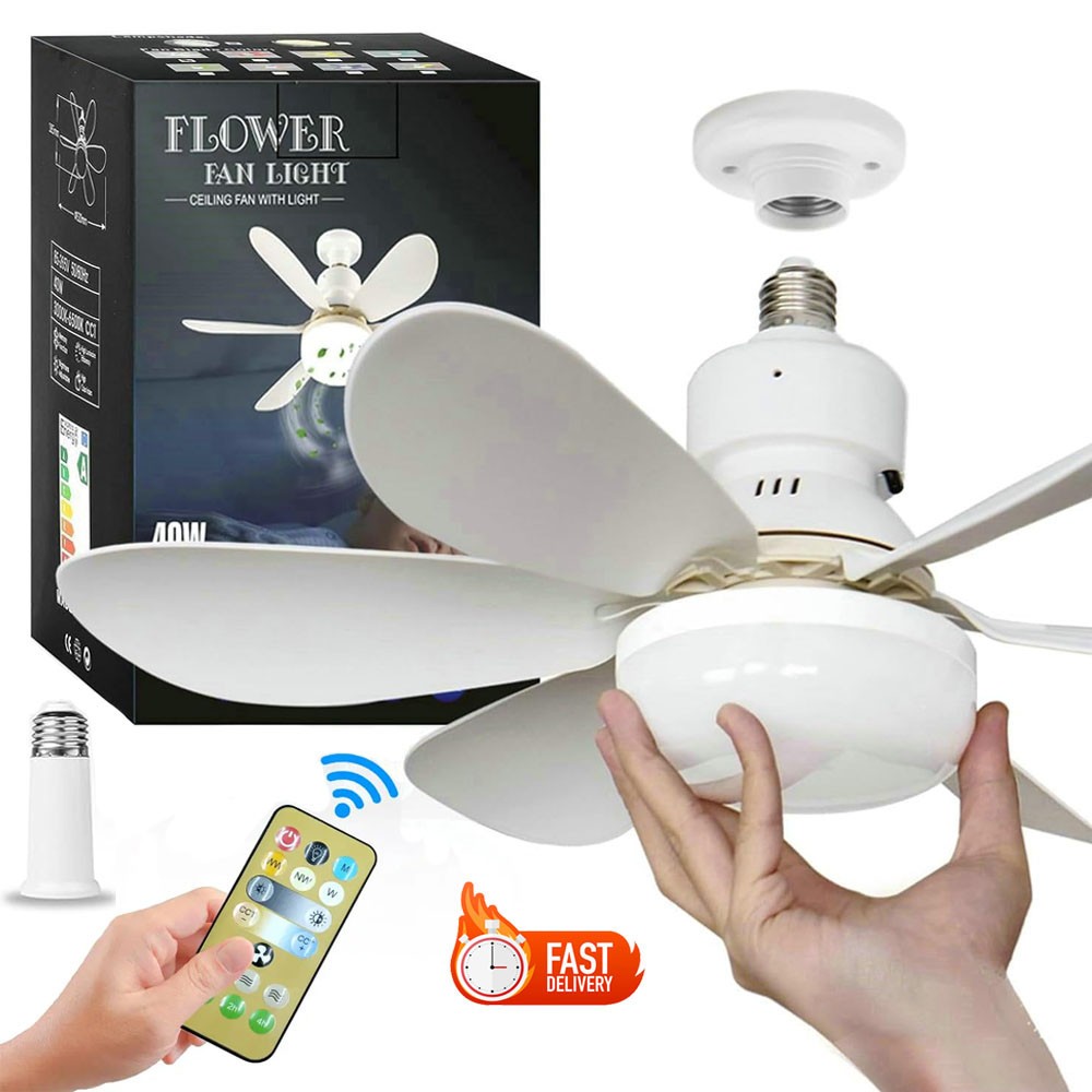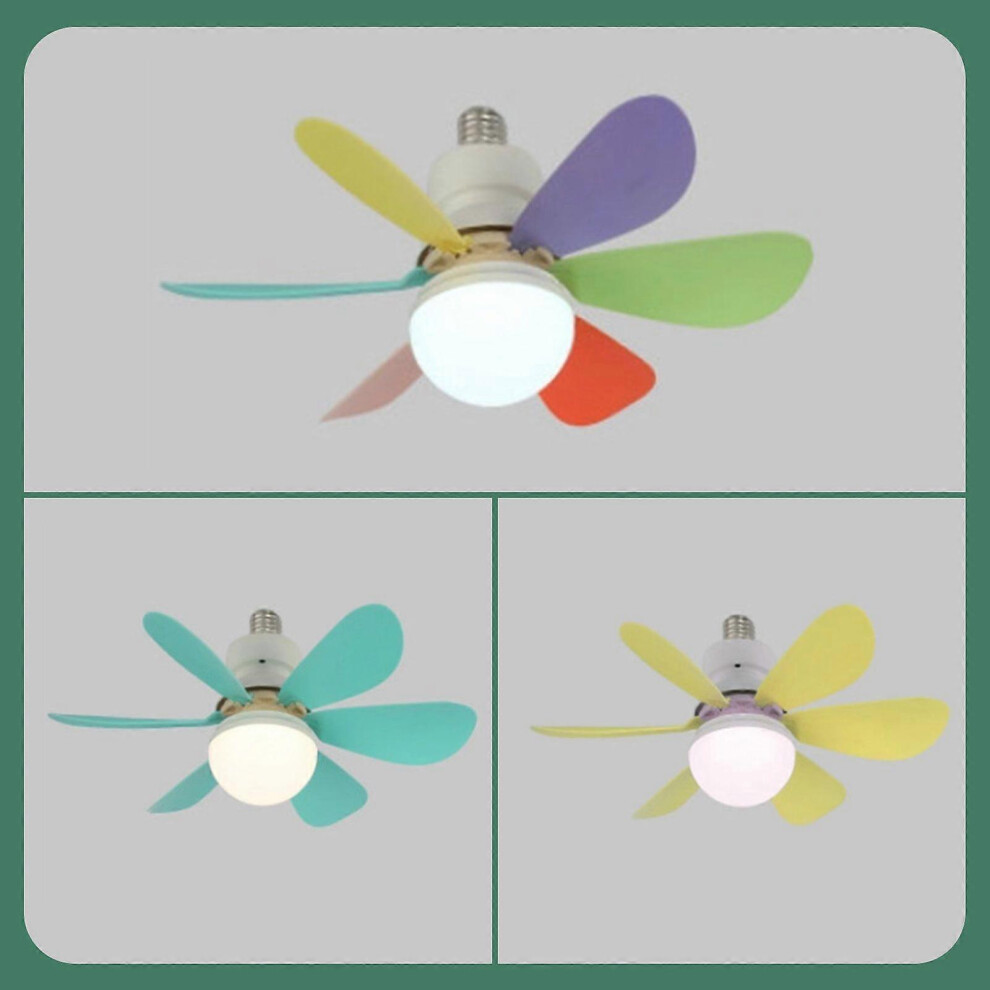 (As show, One size) E27 Fan Lamp Tri-color Dimming Home Bedroom Kids Study Room Living Room Fan Lamp Infinitely Dimmable Timing Function With Remote C