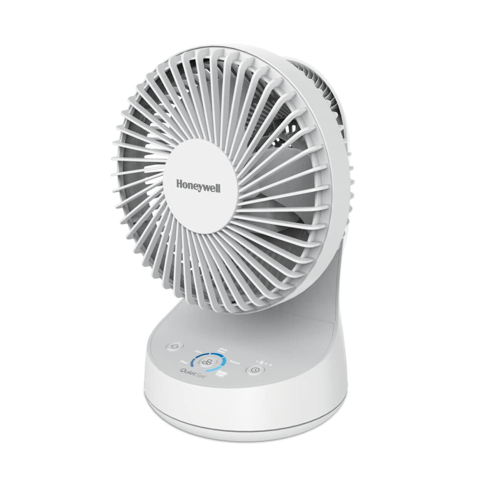 Honeywell QuietSet 5 Oscillating Table Fan White Personal and Small Room Fan with Quiet Operation and 5 Levels of Power and S