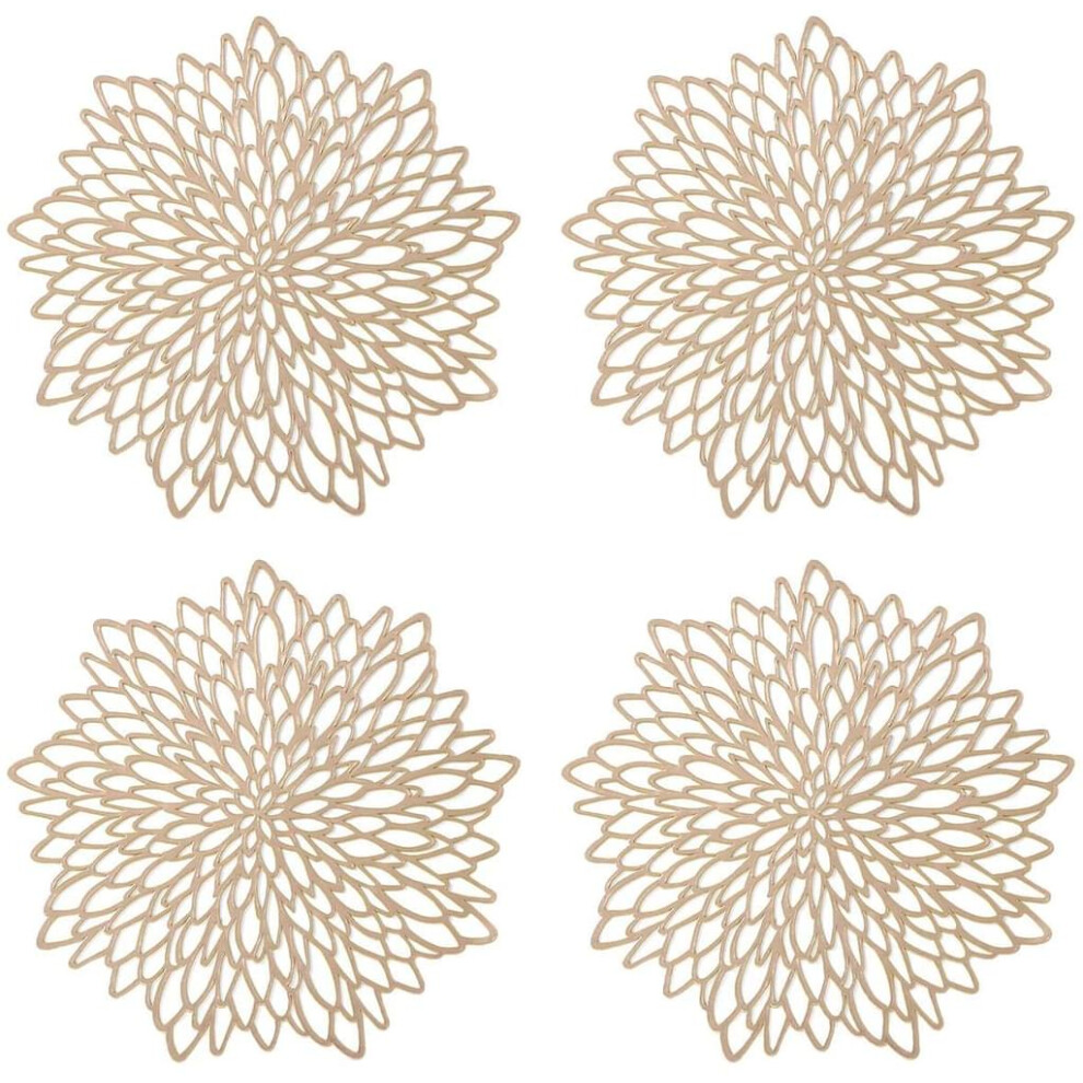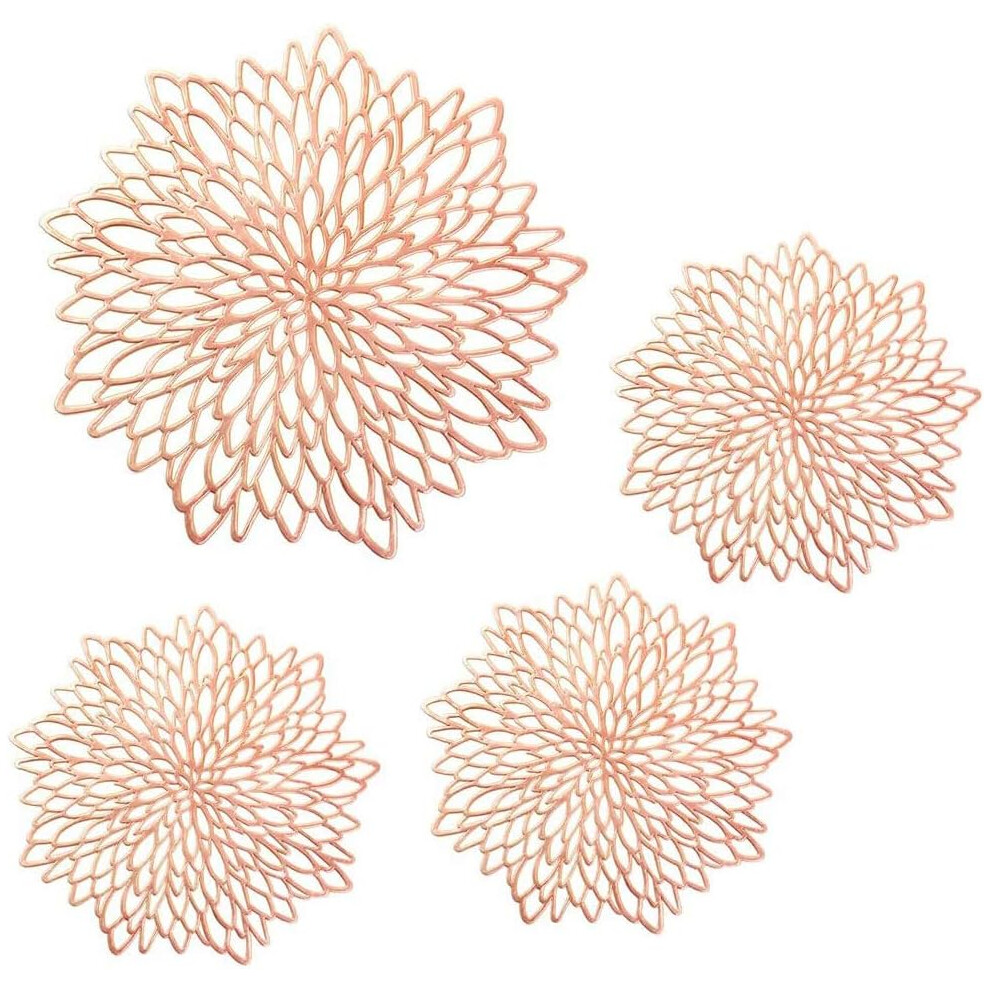 Elegant Rose Gold Metallic Reusable Dining Mat, Decorative Hollow-Out Design Wipeable Vinyl Placemat, Suitable for Any Dining Scene, Coffee Afternoon