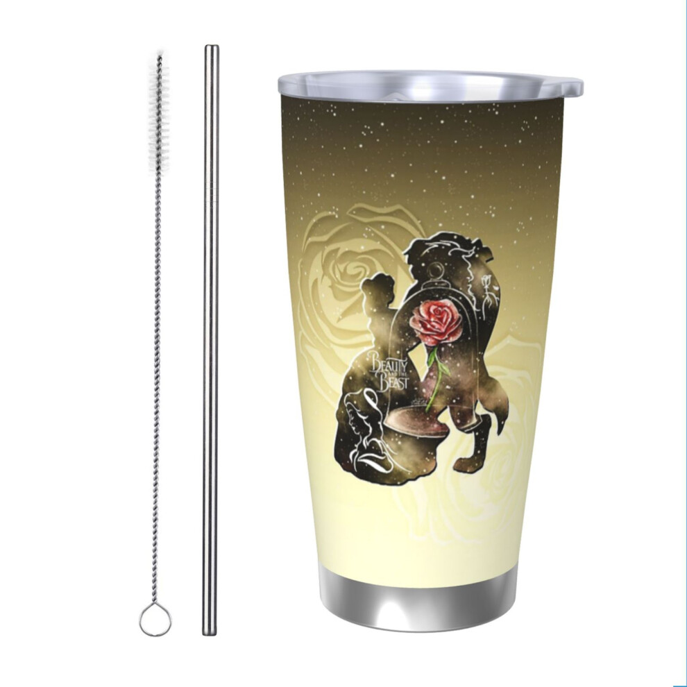 (Beauty - Beast - Gold Red Rose Couple Romantic Magic Enchanted Love_1571) Stainless Steel Tumbler 20oz Insulated Coffee Travel Funny Birthday Christm