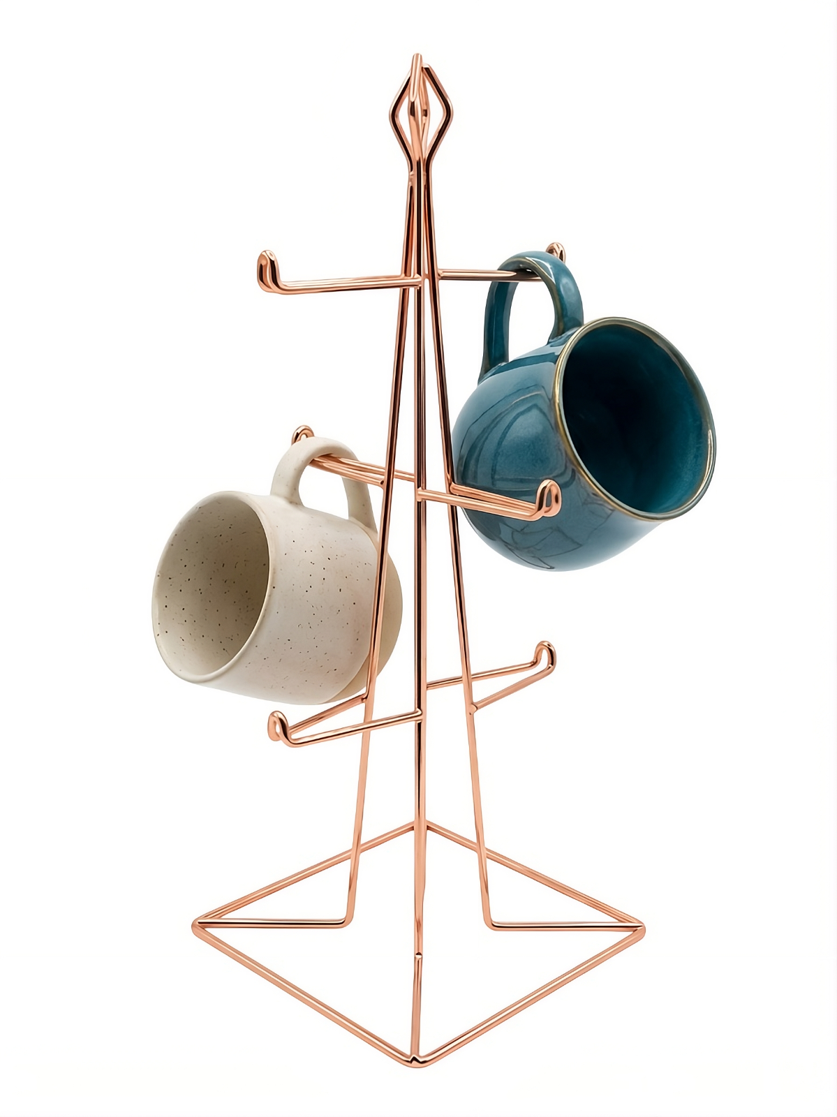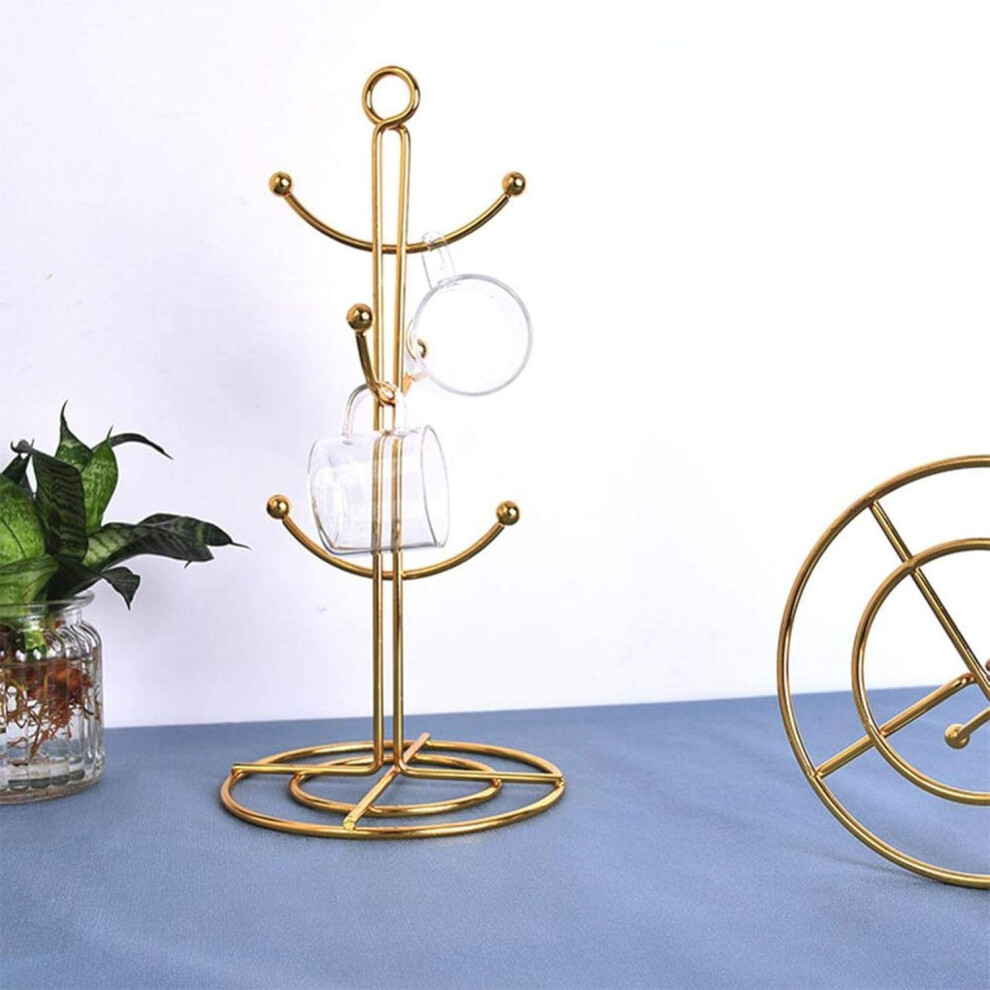 6 Cup Mug Holder Stand Rose Gold Chrome Metal Coffee Tree Rack Kitchen Counter O