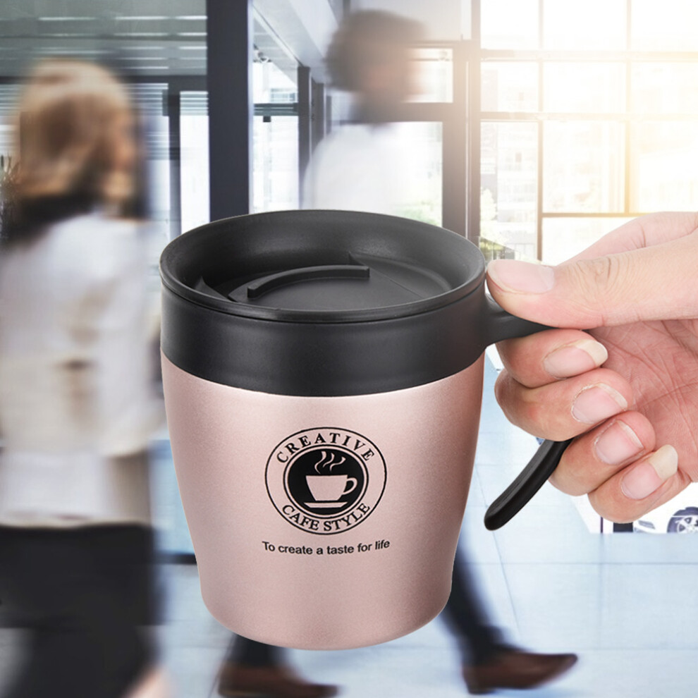 Stainless Steel Insulated Coffee Mug Water Cup with Spoon and Lid for Office Travel(Rose Gold)