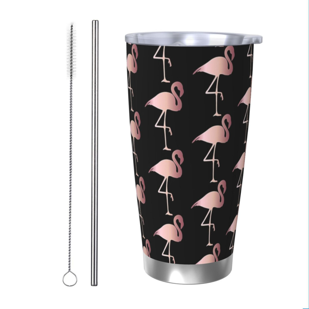(Rose Gold Flamingo Pattern_6765) Stainless Steel Tumbler 20oz Insulated Coffee Travel Funny Birthday Christmas Gifts for Women Men Boss Coworker