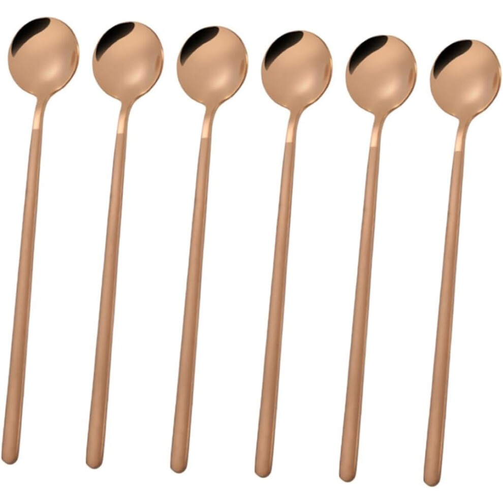 6-Piece Stainless Steel Mini Round Spoon Set 17.4CM Long Handle Coffee Stirring Spoon Rose Gold Finish