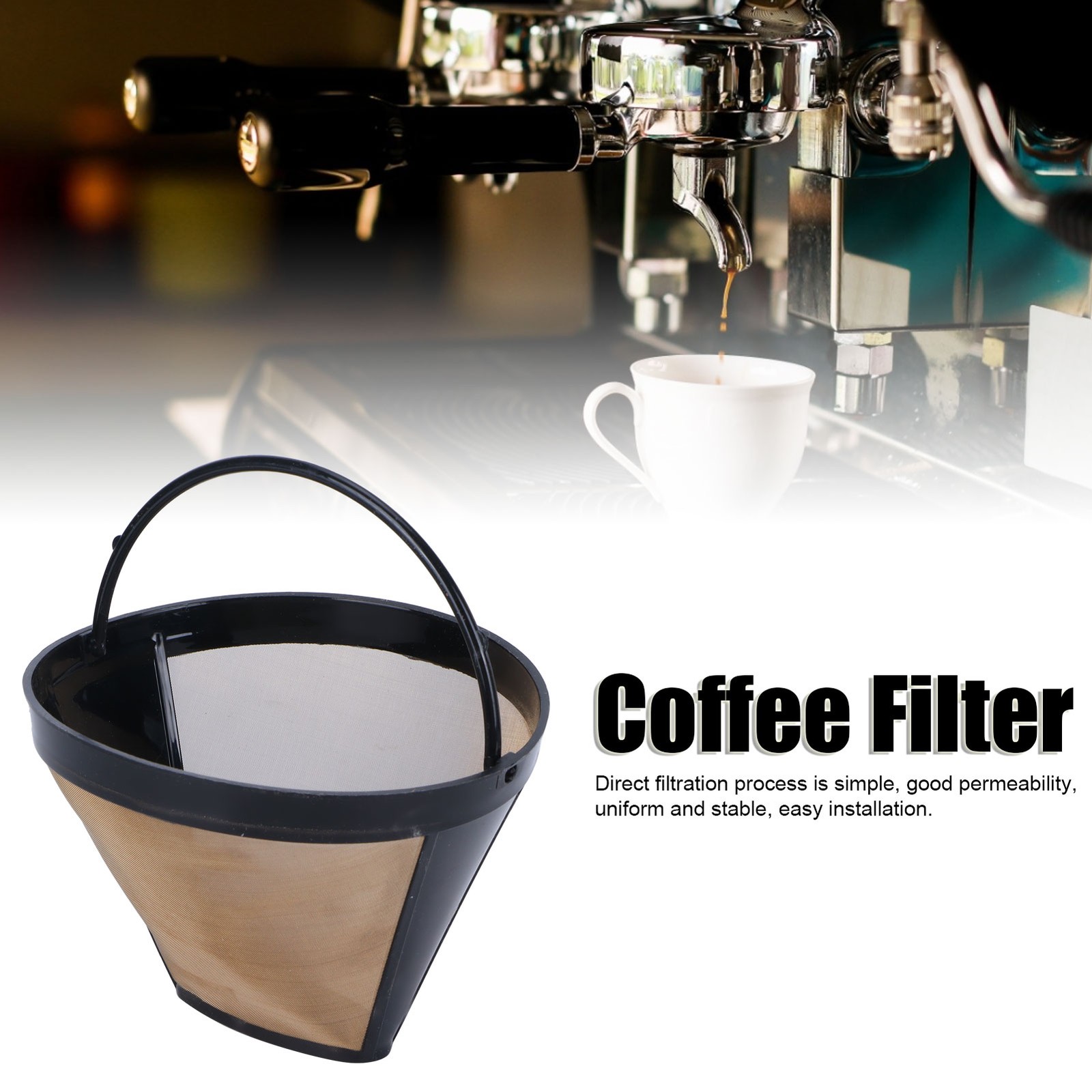 Coffee Filter Stainless Steel Coffee Machine Reusable Cone Coffee Filter Strainer Gold for Home