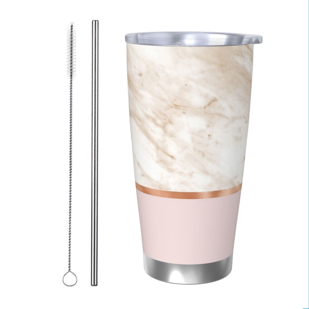 (Caramel Marble On Rose Gold Blush_233) Stainless Steel Tumbler 20oz Insulated Coffee Travel Funny Birthday Christmas Gifts for Women Men Boss Coworke