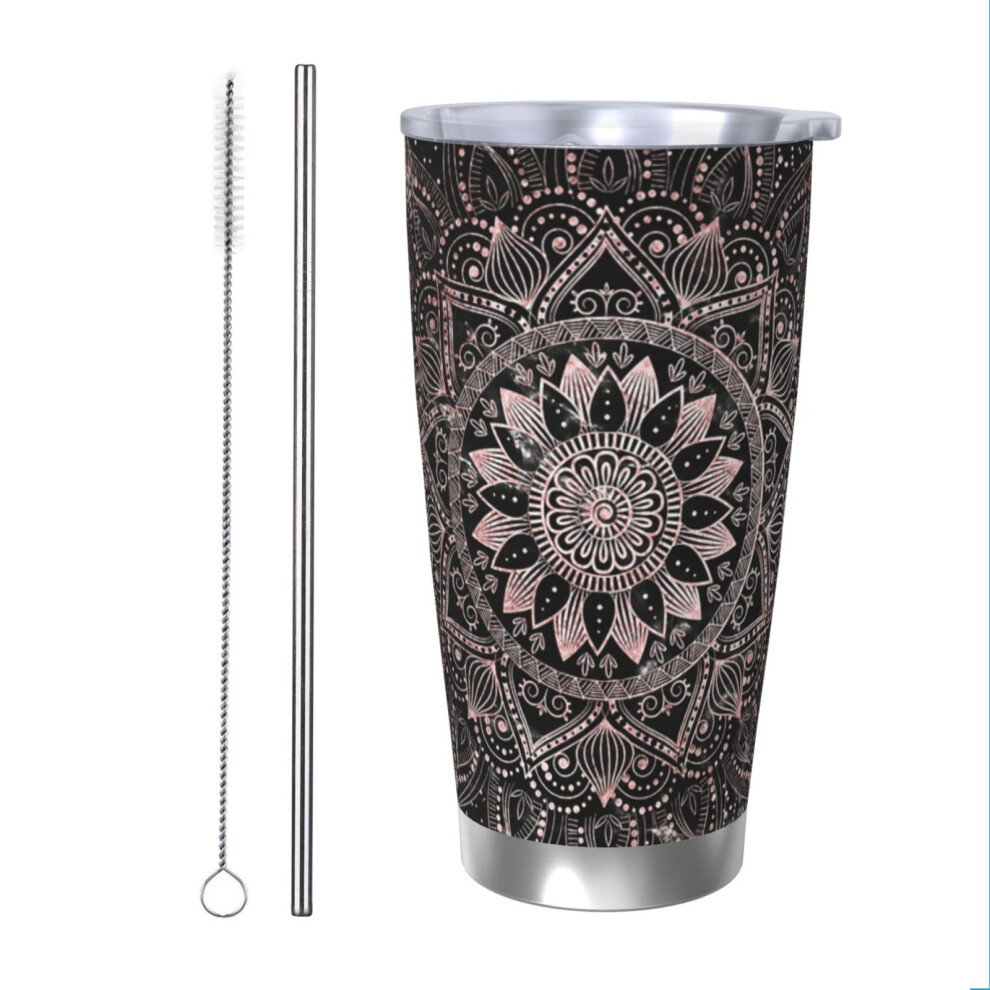 (Elegant Rose Gold Mandala Dots And Marble Artwork_5677) Stainless Steel Tumbler 20oz Insulated Coffee Travel Funny Birthday Christmas Gifts for Women