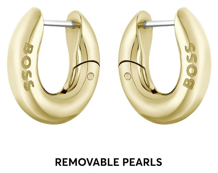 Boss 1580525 Leah Gold Tone IP Pearl Hoop Earrings Jewellery