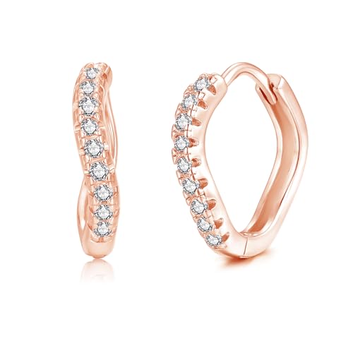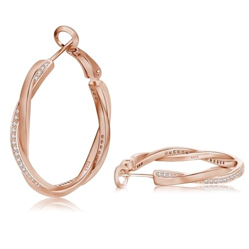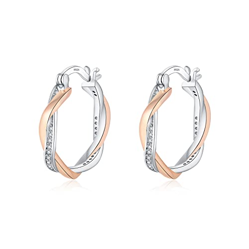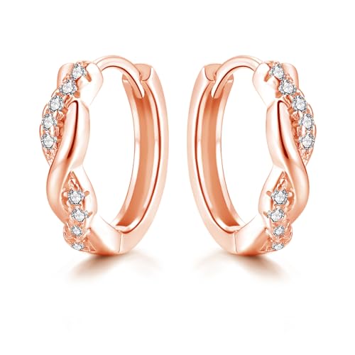 Rose Gold Hoop Earrings for Women, Sterling Silver Hoop Earrings, Twist Hypoallergenic Earrings for Girls, Cubic Zirconia Small Hoops Earrings Rose Gold Earrings Jewellery Gift